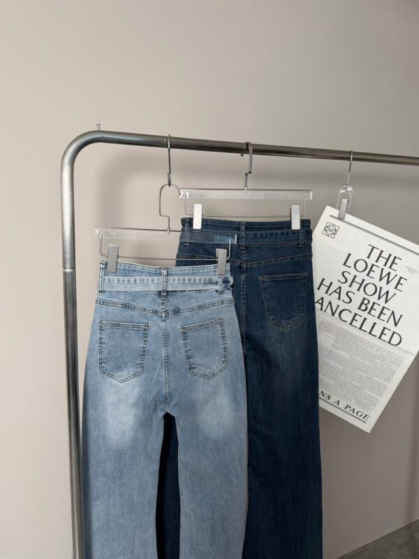 #60389 後交叉三粒釦高腰牛仔長褲